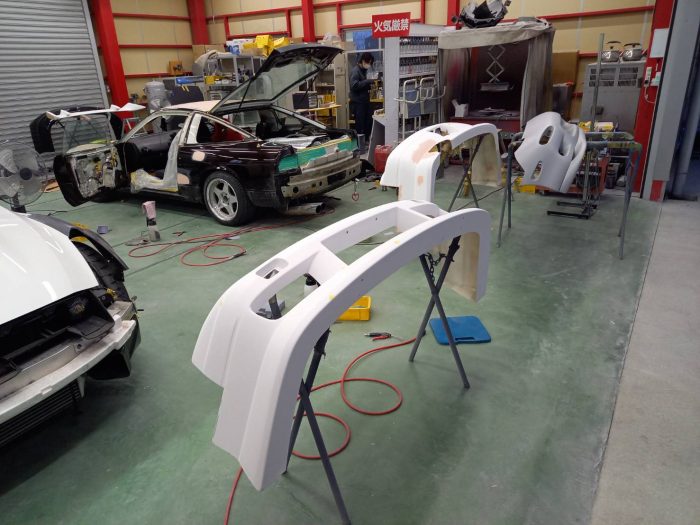 いよいよ塗装。 バンパー、ウイングなどエアロパーツは別に塗装します。