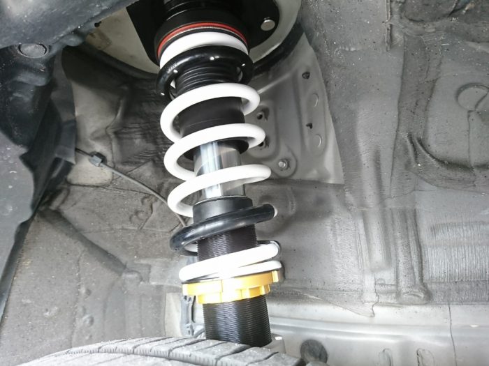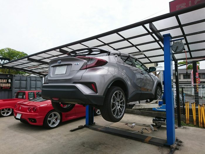 今までローダウンスプリングでドライブを楽しまれていた常連のA様のC-HRですが、よりリニアなハンドリングと、好みに合わせるための調整機能を獲得すべく、車高調整式サスペンションにグレードアップ。