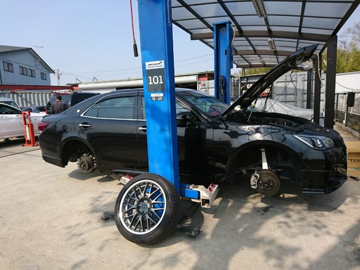 足回りの案件の多い今日この頃。 今日は210クラウンに車高調サスペンションの取付です。