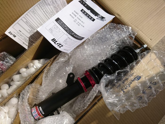 車高調取付中のCR-Z。 作業的に難しいことはなく、サクサクと進んでしまいます…。