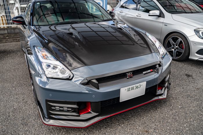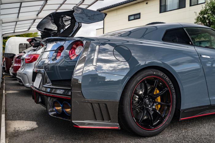 ルーフ、ボンネットをはじめ、至る所にカーボンパーツが奢られ、チタン製のマフラーやセパレーションエッジの存在感も圧倒的で、さすがGT-R NISMOの一言です。