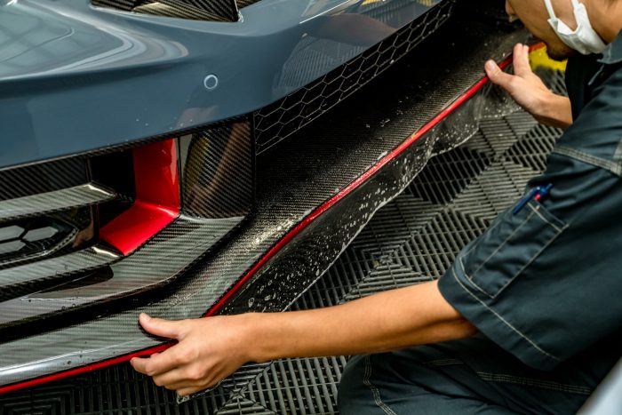 2024NISMOのフロントバンパーは、形状が非常に複雑なため、熟練の作業者による高い技術が要求されます。