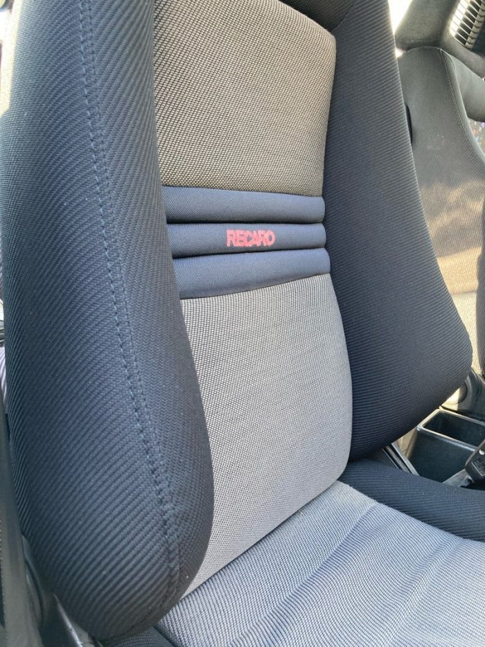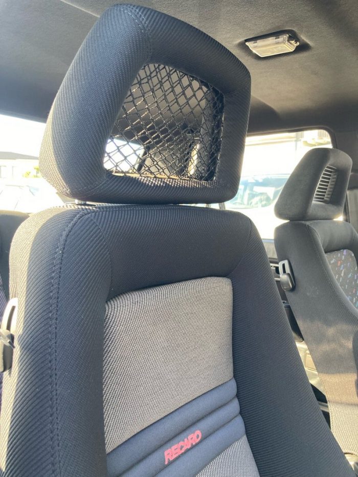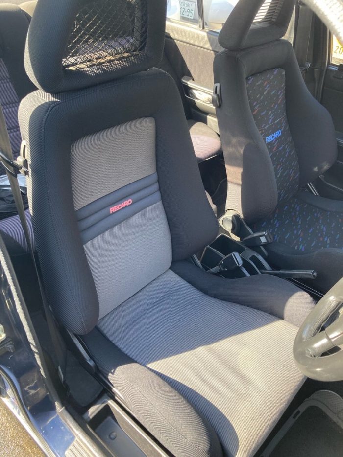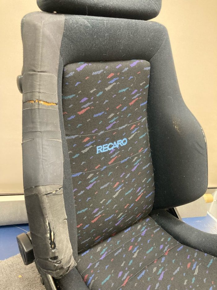左右で型の違うRECAROを使用しておられ、どちらもサイドサポート部分が破れた為にテープでの補修がされていました。