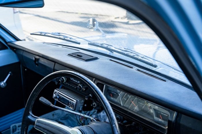 ダッシュボードは、割れ、変形が酷かったので、割れを修理して、成形してから、ビニールレザーを貼っています。