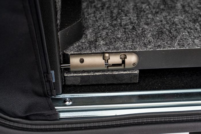 両サイドの形状が車体後部までぴったり合っているので、隙間から小さな荷物(スマホなど)が落ちてしまうことがありません。