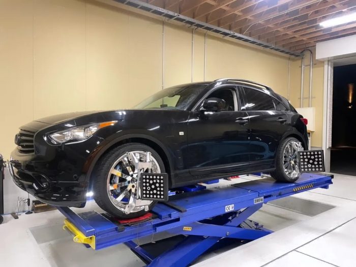 車高の変化によりアライメント数値は必ず変化しますので、タイヤの偏摩耗防止や走行安定性を確保するためにも必須の作業です。