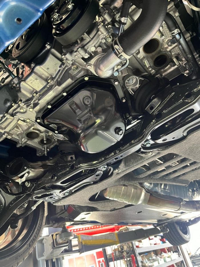 86&BRZは水平対向エンジンでエキゾーストマニホールドは下側に付いています。