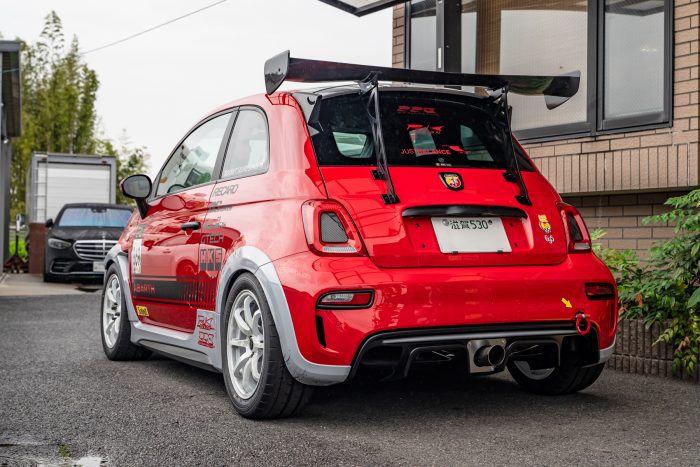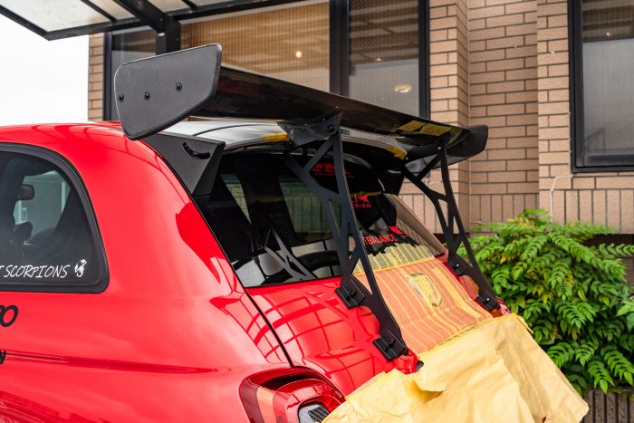 アバルト695にGTウイングを取り付けさせていただきましたので、ご紹介いたします。