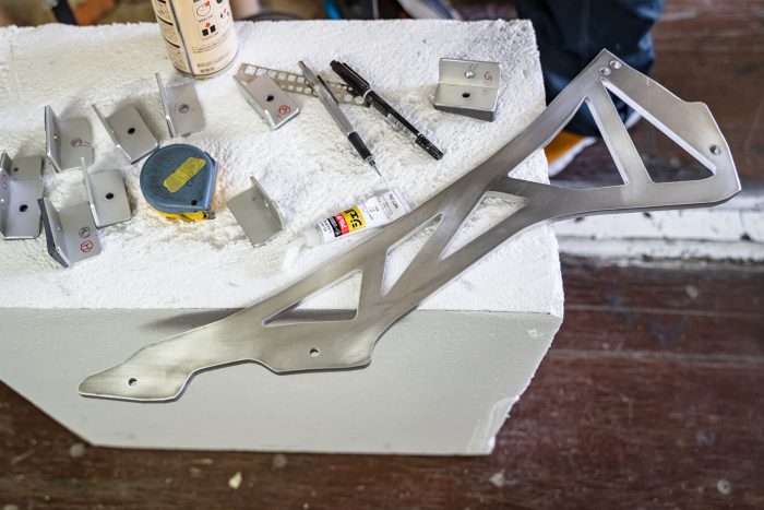 ステーはRK DESIGNのリアウイング用ステーのデータを元に、今回のウイングに合うようワンオフ製作。