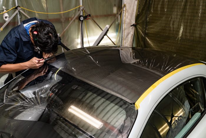 今後は、ボンネットやルーフなど、様々なパーツにカーボン調プロテクションフィルムを貼ることで、保護効果とドレスアップを楽しむ事が可能です。