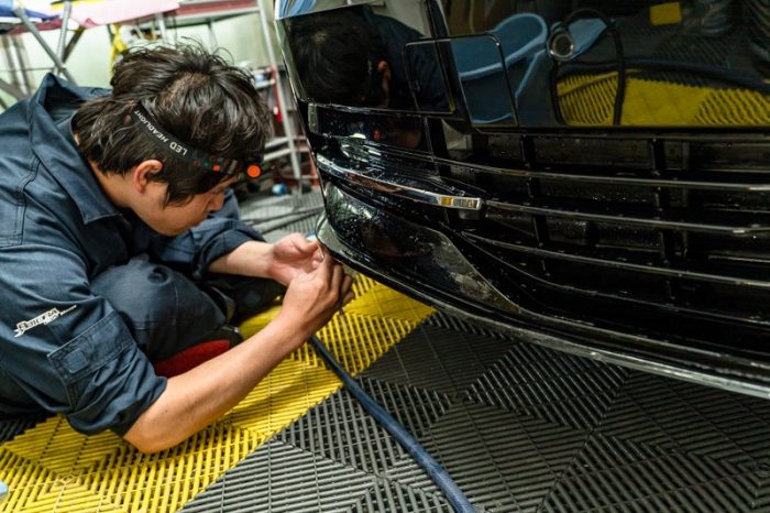 ヘッドライトへの施工は、黄ばみや白濁防止に効果的。