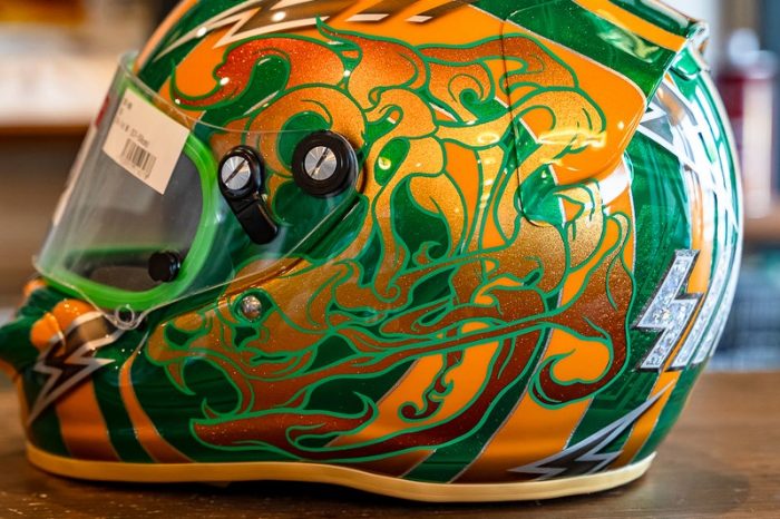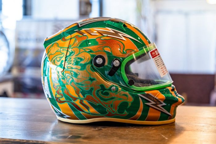 カートレース用ヘルメットのカスタムペイントをさせていただきましたので、ご紹介いたします。