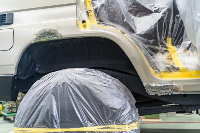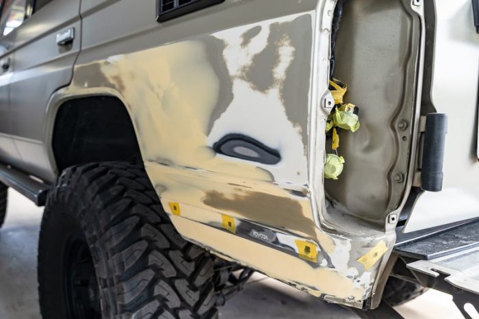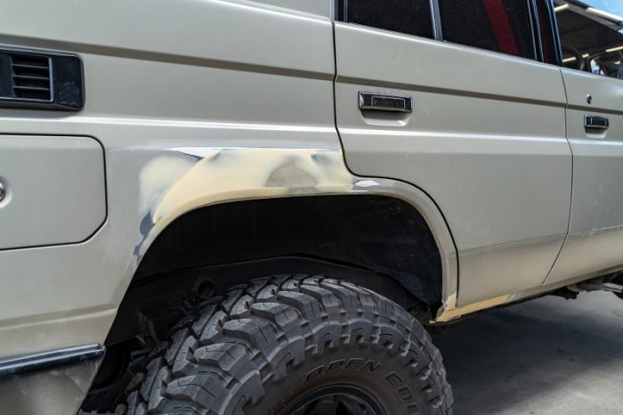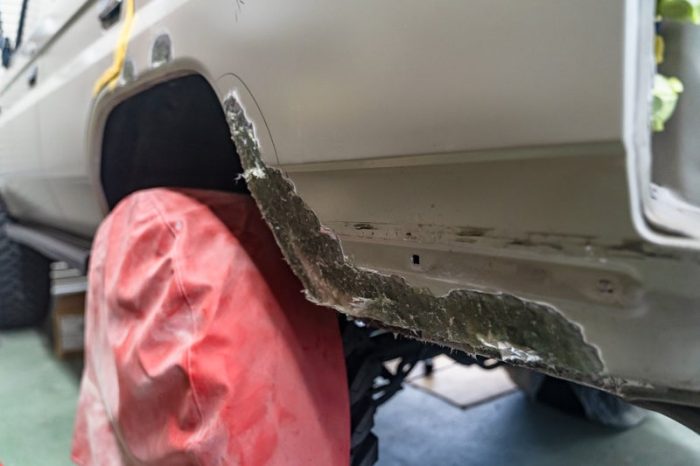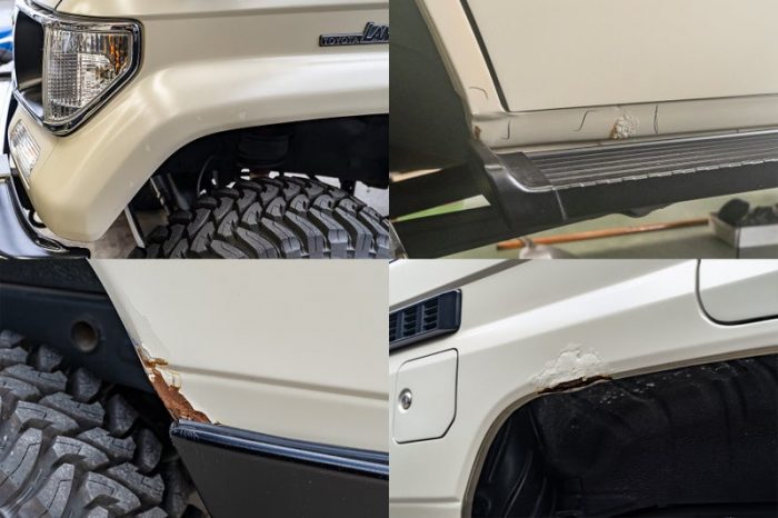 修理場所は、両サイドのリアフェンダー、右サイドシルなどにある錆を修理していきます。