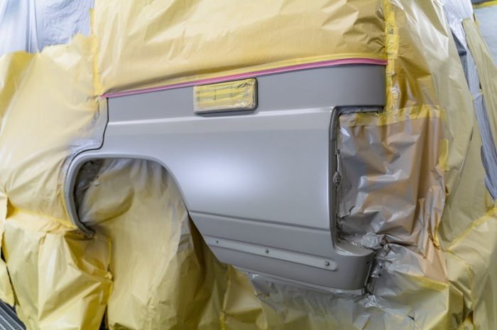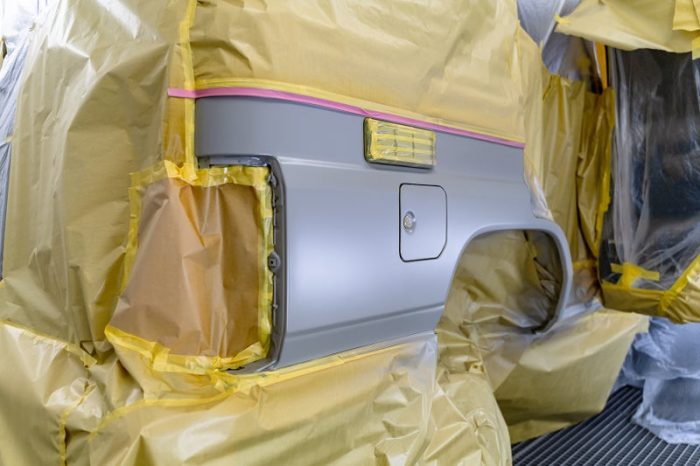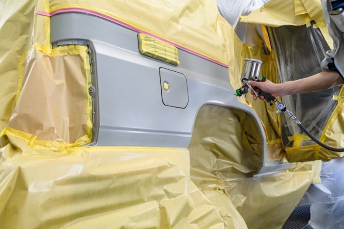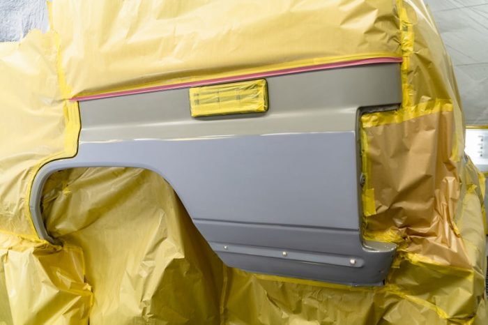 サフェーサーを吹き付け、研磨して下地処理をします。