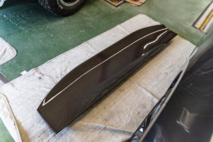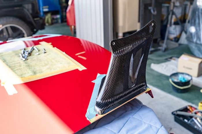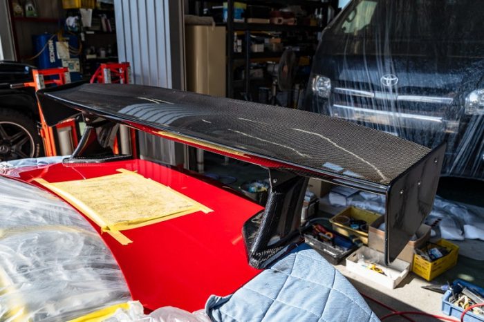 取り付ける製品は関西サービスのカーボン製GTウイング。