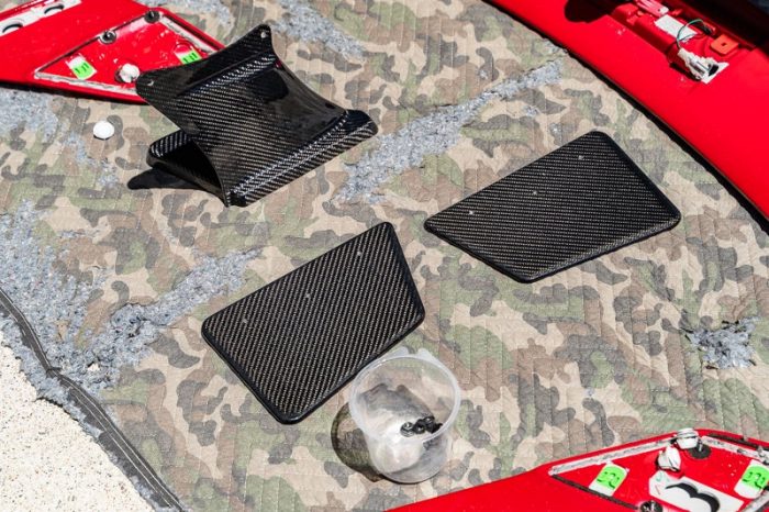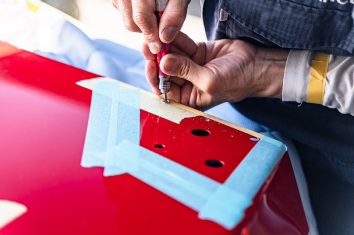 ウイングを仮置きして、慎重に位置決めをし、マーキングした位置に穴を開けます。
