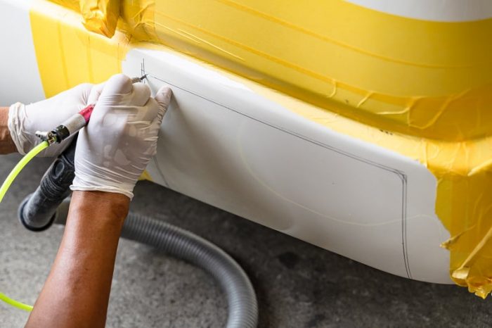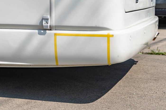 位置が決まったら、リアバンパーに穴を開けていきます。