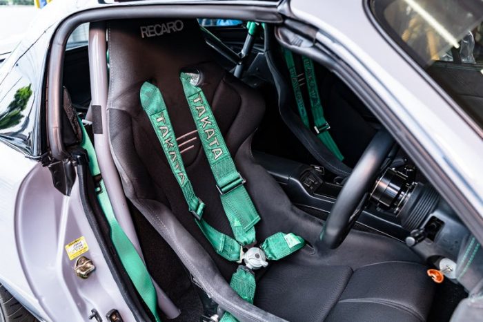 グリップなど、良く手の触れる部分は、本革、アルカンターラのコーティングも施工させて頂きました。