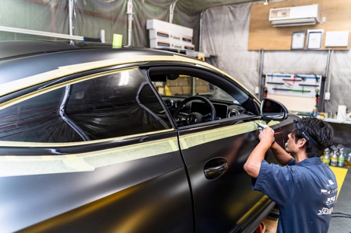 ウィンドウモールをグロスブラックのラッピングフィルムで覆います。