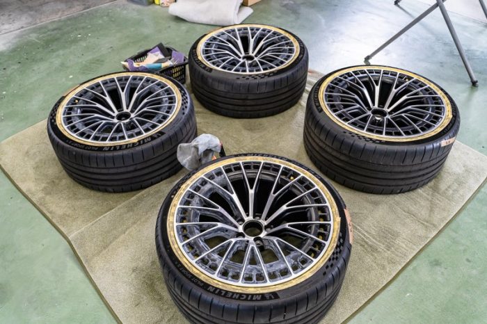 ホイールもアウターリムを残してシルバーの部分を黒に塗装いたします。