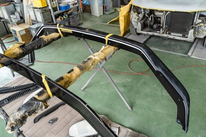 上部はFRPでボディ同色、下部はカーボンでクリア塗装を施します。