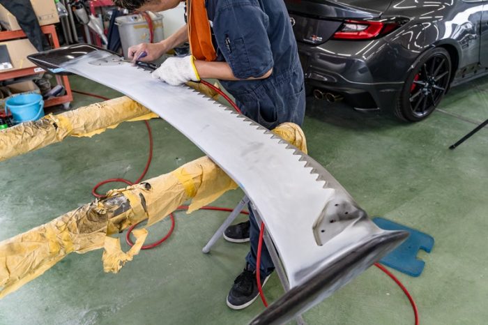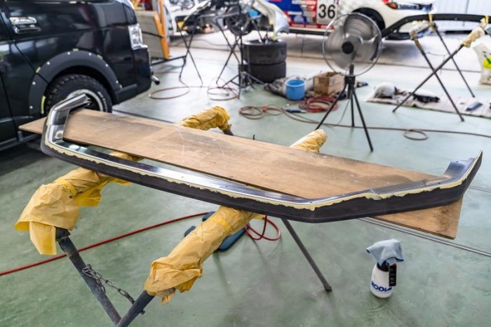 リップスポイラーは、仮合わせを行い、問題がないことを確認して、表面の足付けを行います。