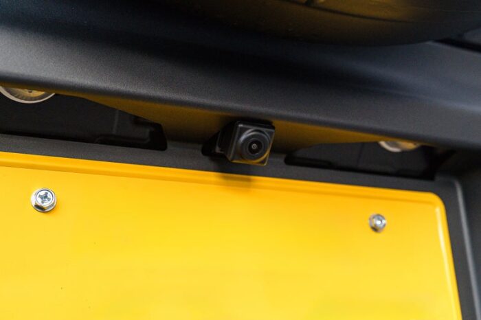 専用バックカメラの取付にはリアバンパーの脱着が必要となり、工賃は若干高くなってしまうのですが、画角とガイドラインの表示位置が後退時に丁度良い角度となり、非常に見やすいです。