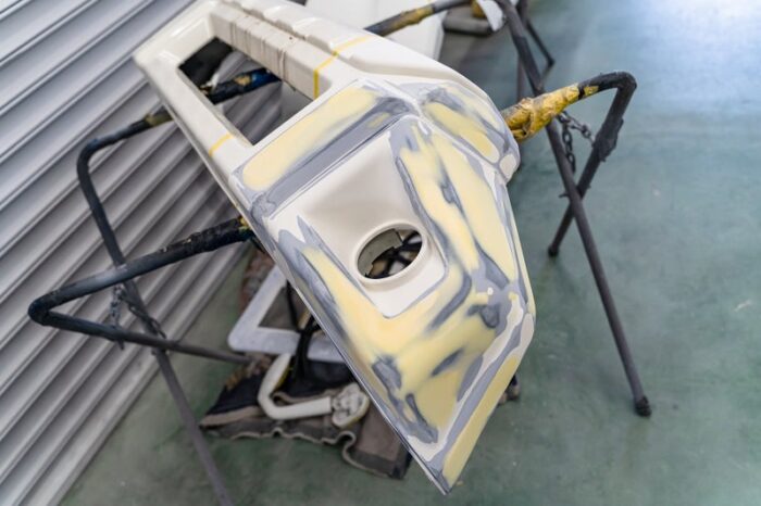 下地を整えた後は、サフェーサーを塗布し、さらに研磨して塗装の土台を仕上げます。