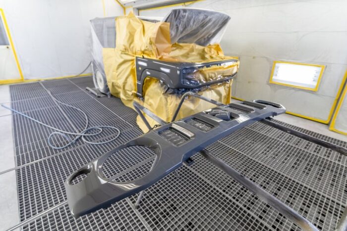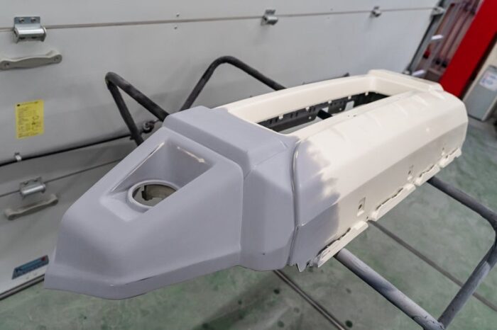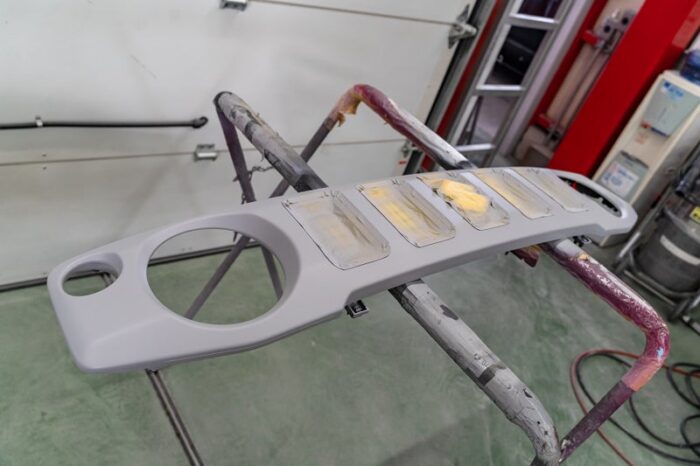 その後、専用の塗装ブースにてボディ同色で塗装。