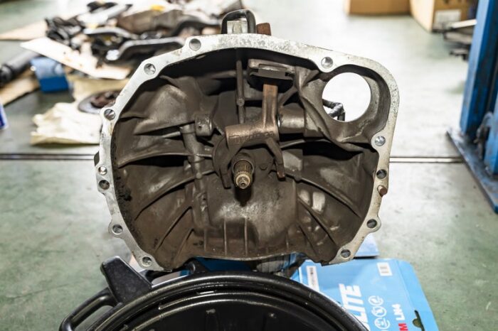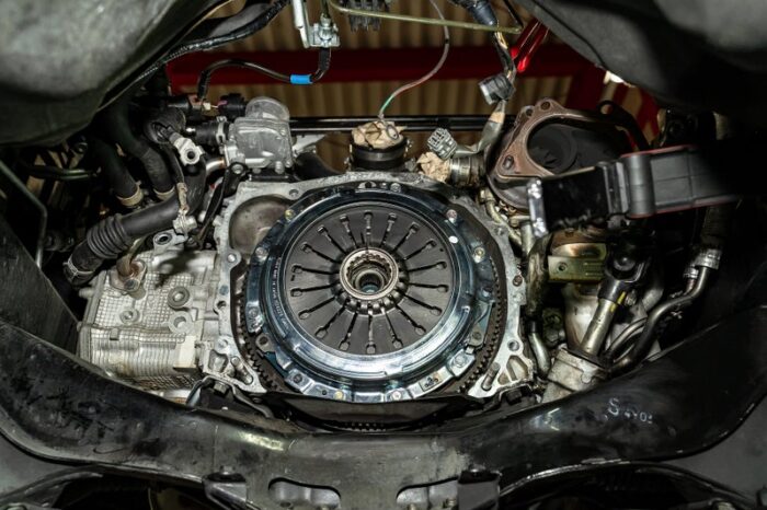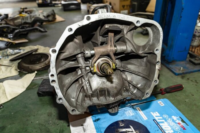 このクラッチはエンジンとミッションの間に取り付けられているため、交換するにはミッション本体を車両から取り外す必要があります。