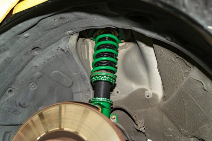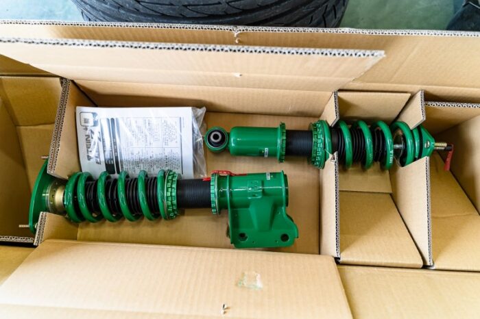 続いて、足回りのリフレッシュ作業です。 今回交換するサスペンションはTEIN FLEX-Z。