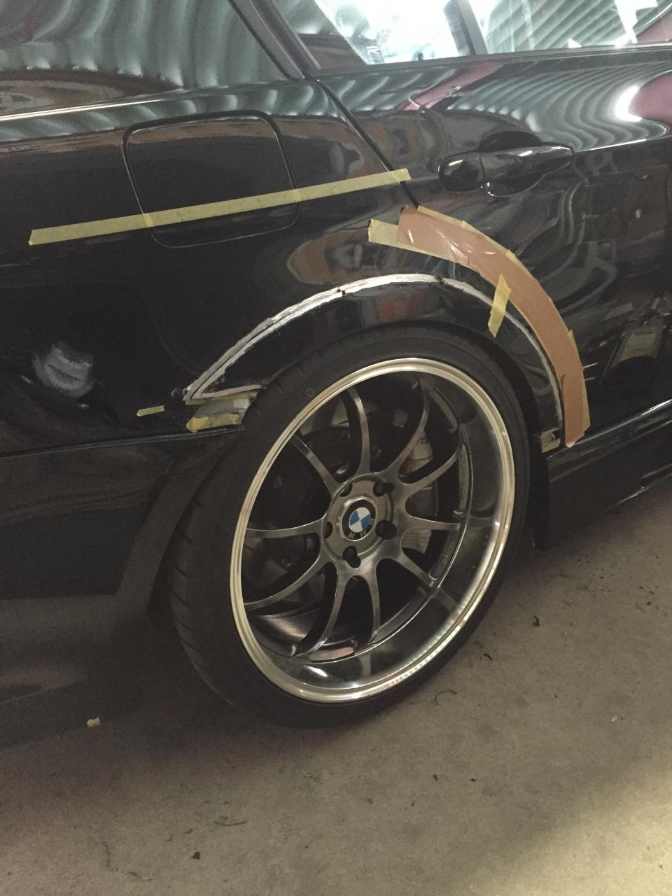 さて、今回e90は車高を少し下げてRのみタイヤに被った分のフェンダーを切り上げです♫