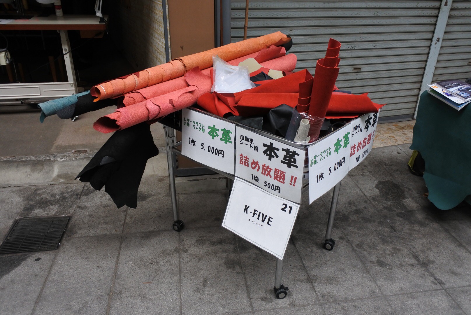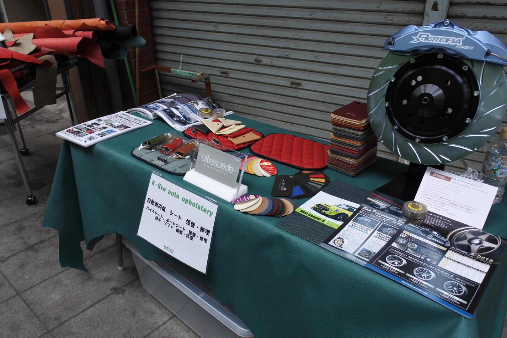 今回は、車両の展示は無しで、地元イベントということで、本革端切れの販売や、