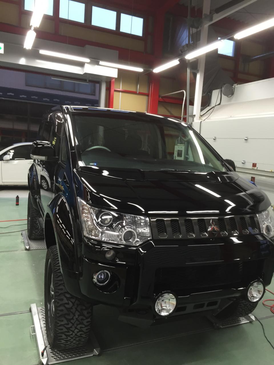 色は三菱の純正色でガラスフレークというすごく細かいフレークの入ったブラックです!! オーバーフェンダーの塗装取付もさせていただき、リフトアップされたボディによく合っています!