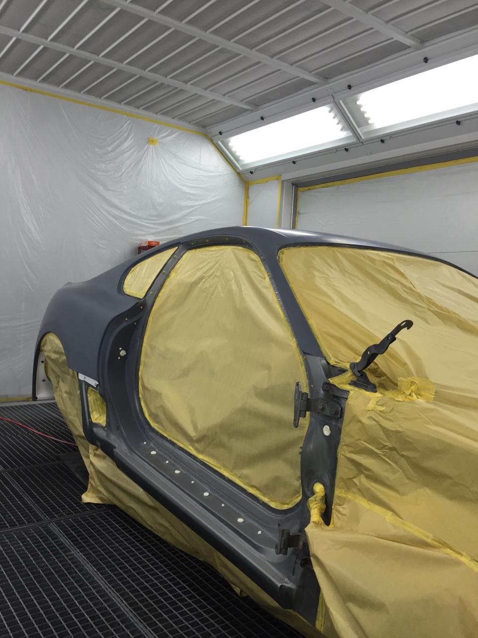 部品待ち等で作業を少し中断していたスープラですが、ようやく塗装ブースに入りました!