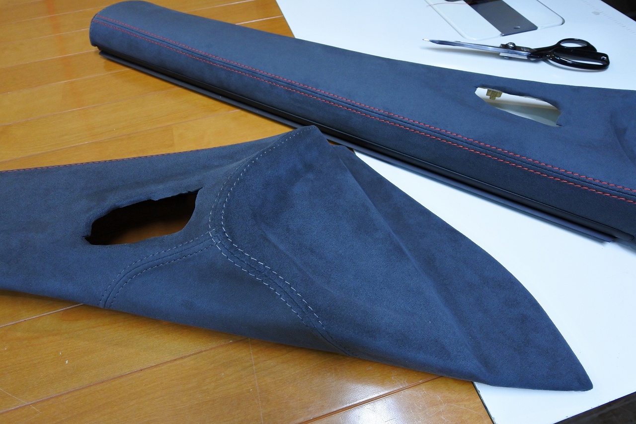 生地は、東レのultrasuede® ステッチ糸は、欧州車などでも