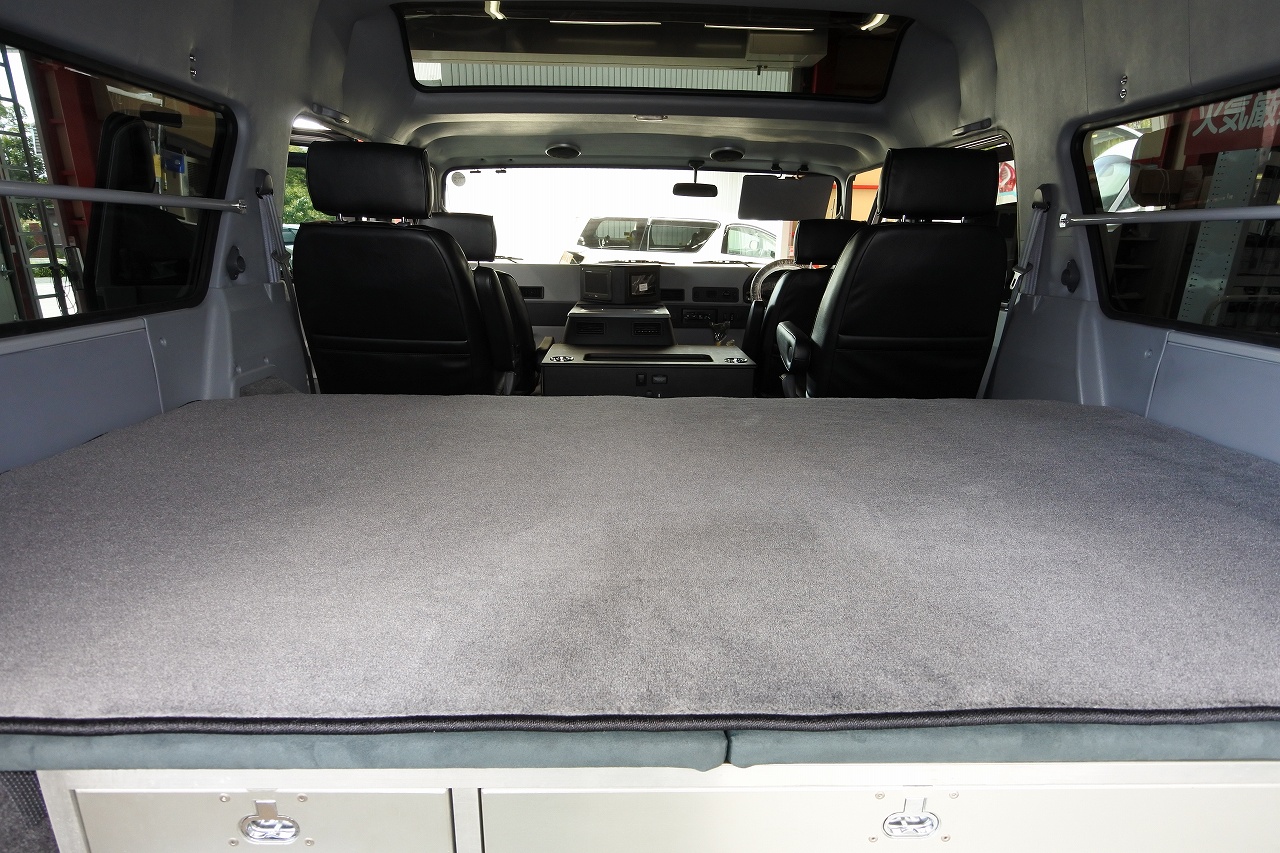 キャンピングカーへ改造されている車両ということで、リアは、ベッド