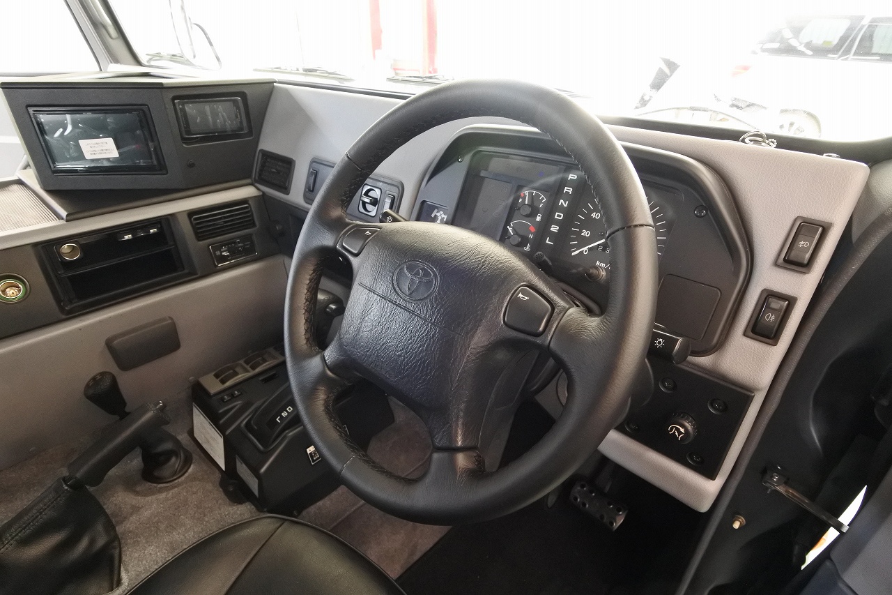運転席は、ステアリング、ATシフトレバー、サイドブレーキなどの