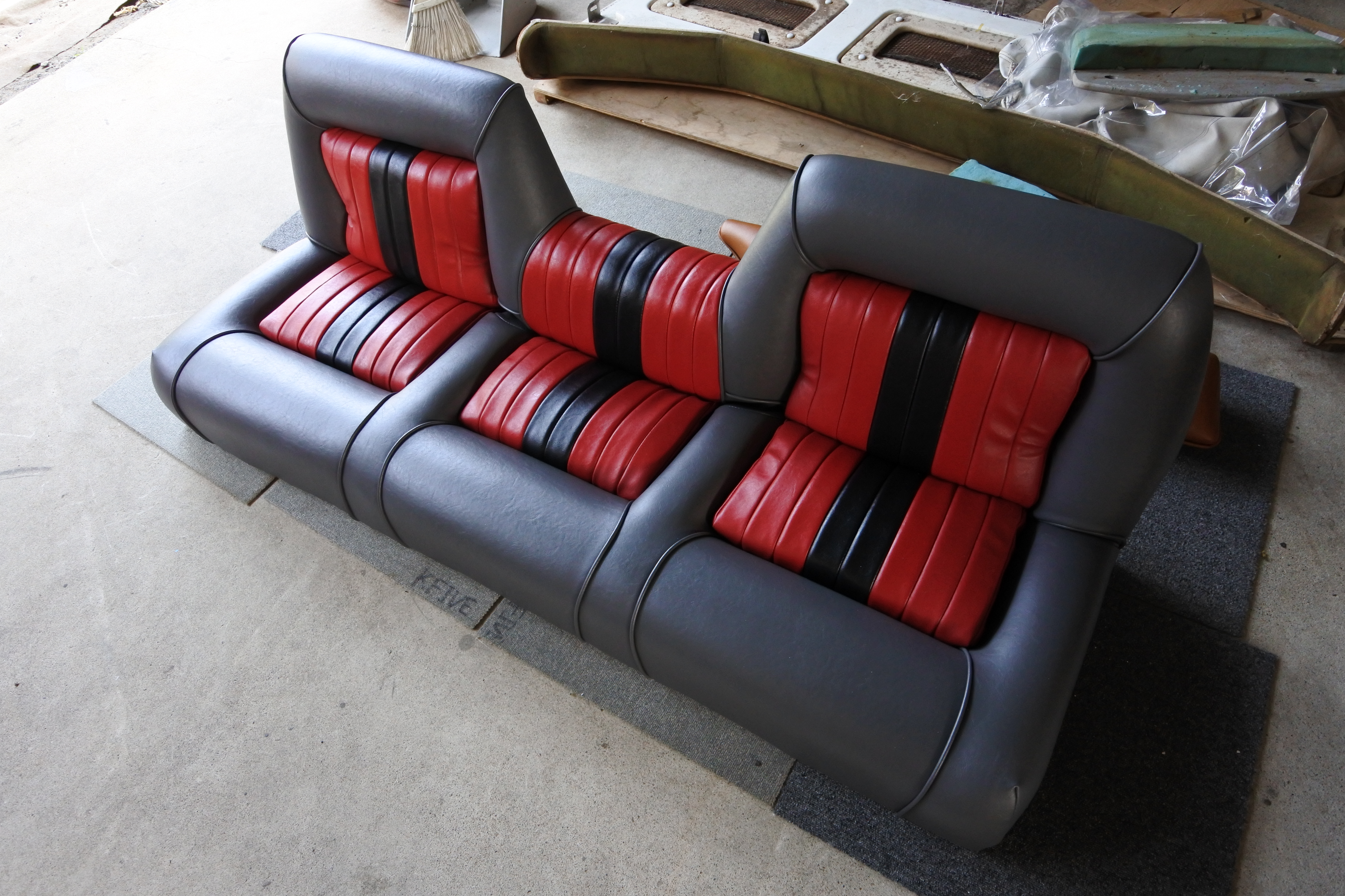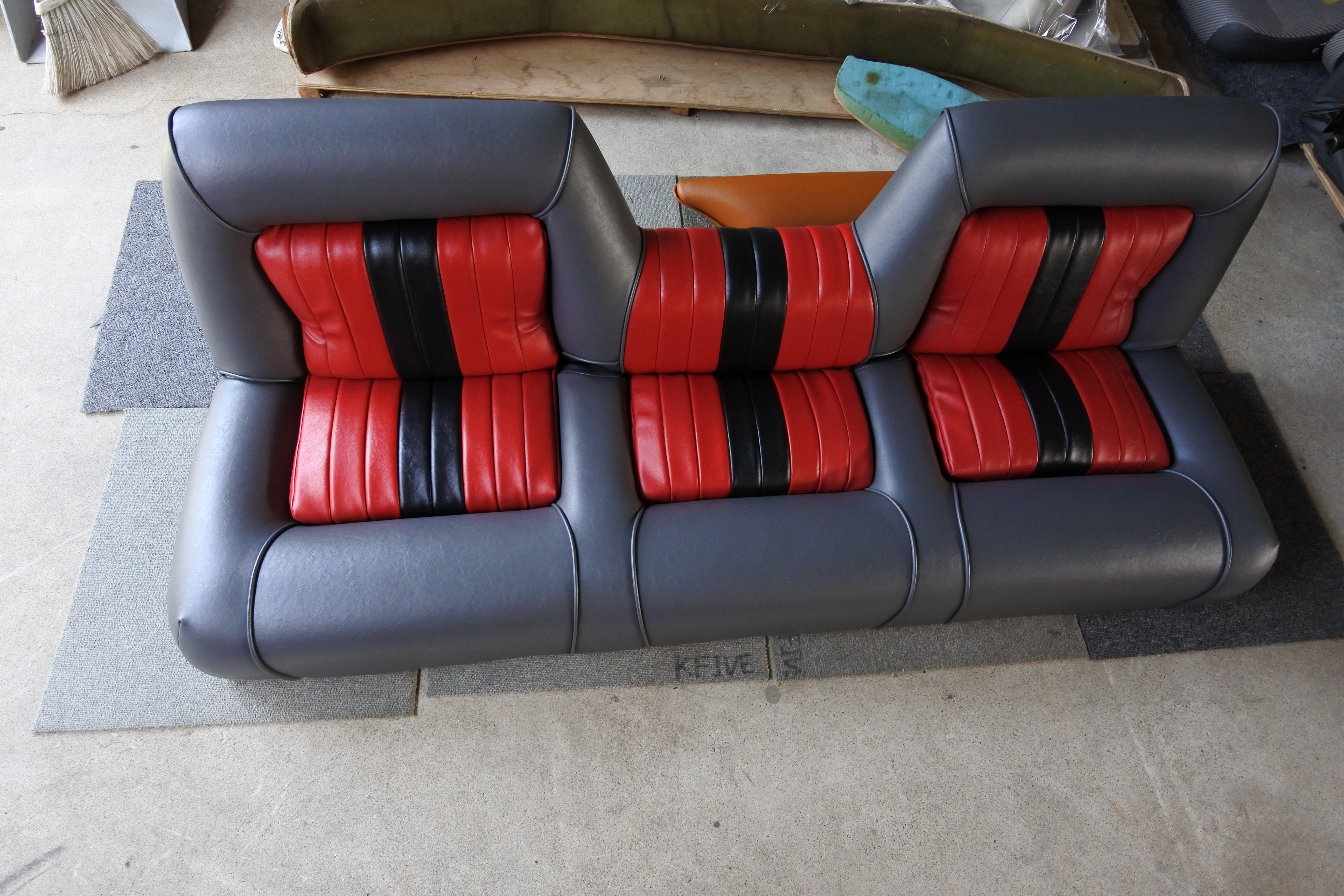 グレーベース、赤、黒 タックロール仕様で張り替えさせて頂きました。