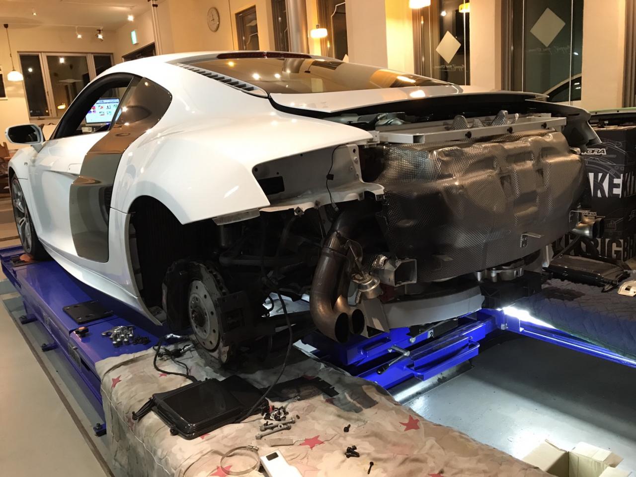 さてさて、そんなお仕事が捗る中、audi R8のマフラー交換です。