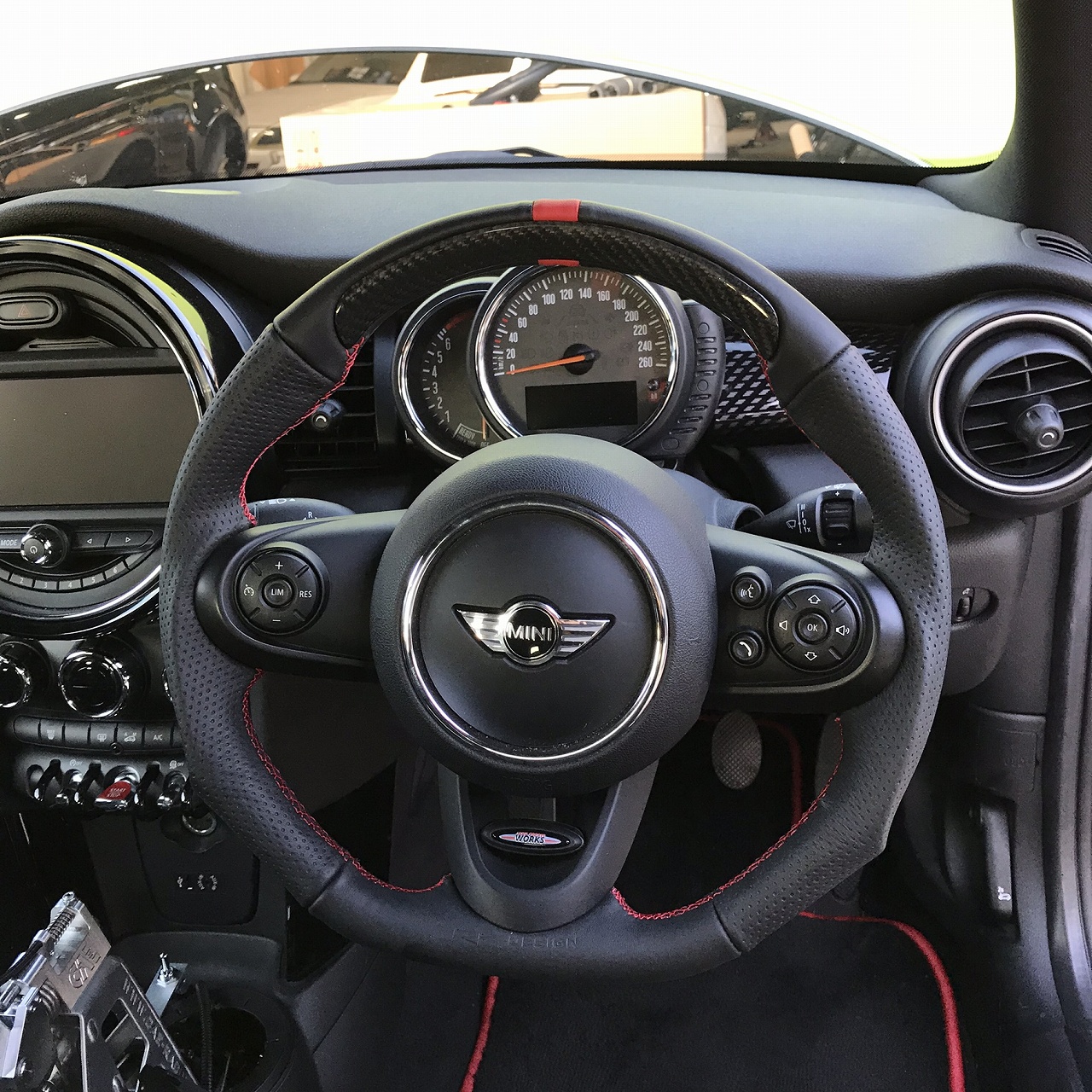 スポーク下部分は、JCW純正ステアリングの下部分を取付可能です。