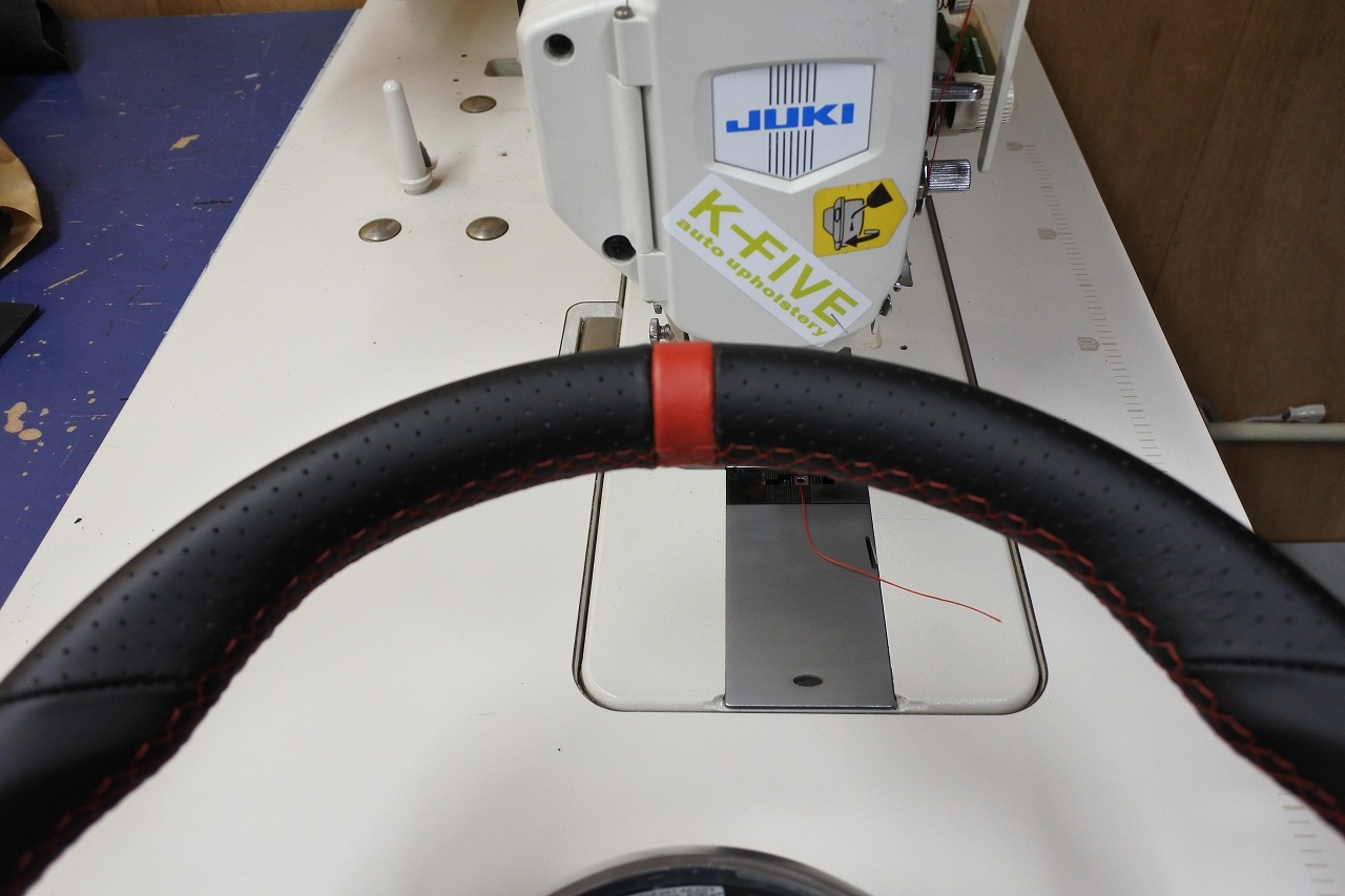上下をパンチング、センターマークも赤色の本革での巻き替えです。