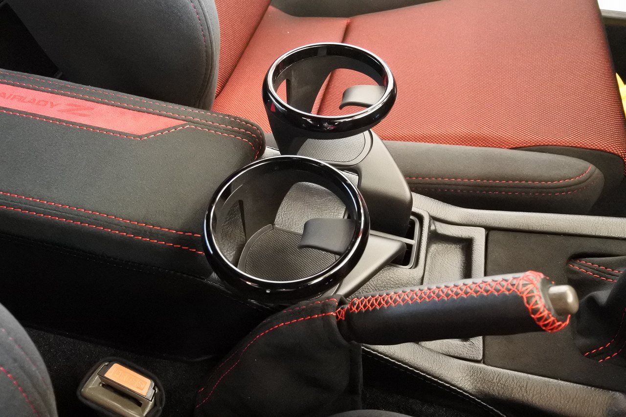 ドリンクホルダーを取付もご希望でしたので、マツダ NDロードスター純正のドリンクホルダーを取付させて頂きました。脱着式でとても便利です。簡単に紹介させて頂いていますが、スペースや取付位置などかなりシビアで、パネルの製作などもあったので、見た目以上に相当手間のかかる作業です。