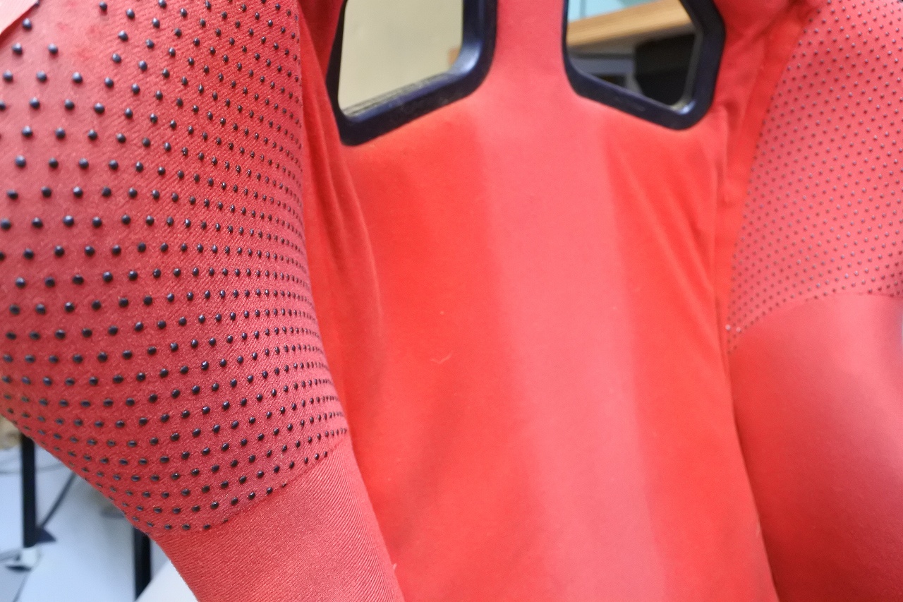 今回は、ショルダー部分のドット生地部分は、違う生地での張替えですが、