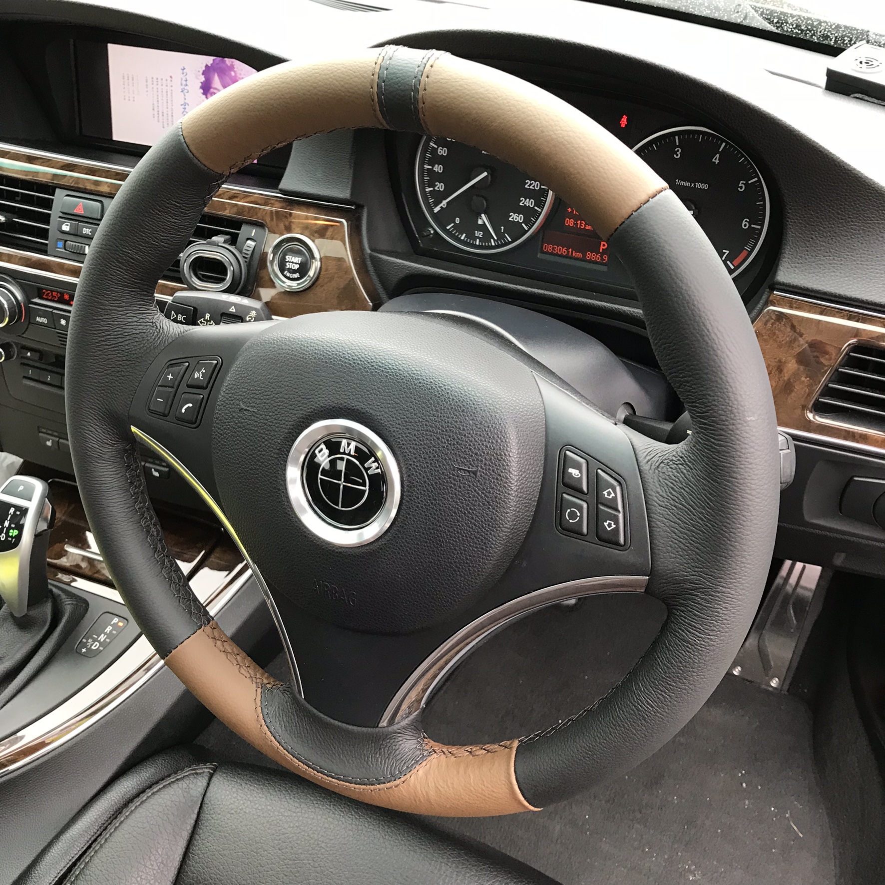 ブラックとブラウンの本革を使用して、センターマーク、下部分縫い分け
