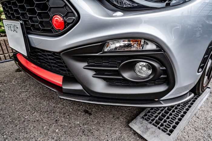 フロントリップ スプリッターはお客様の持ち込みで、Fearlezz.Modelのカーボン製です。