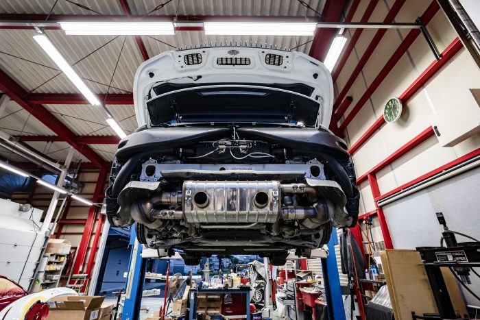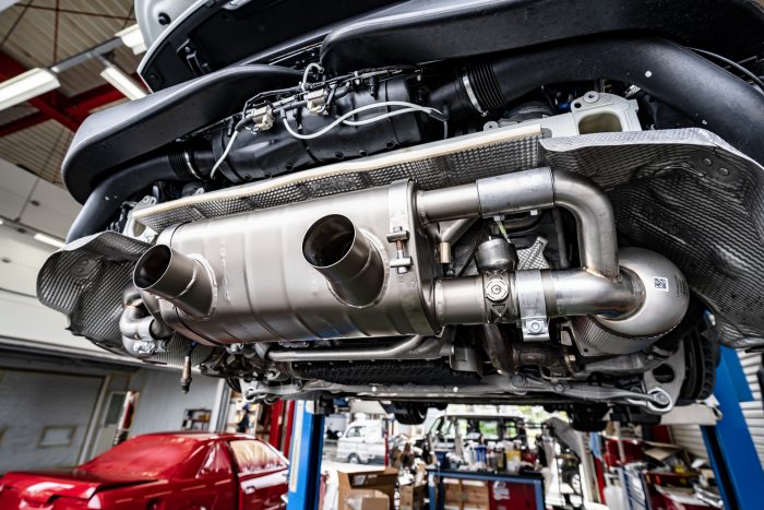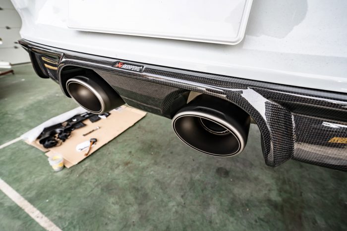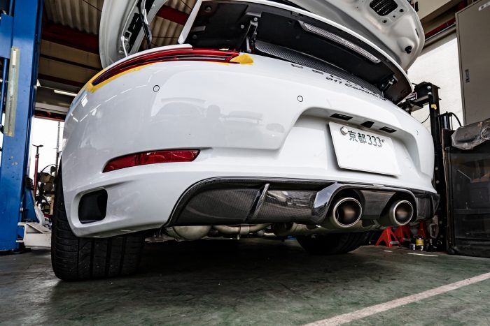 991型カレラ後期(991.2)のマフラーの取付に際しては、リアディフューザーをアクラポビッチ製のモノに交換する必要があります。