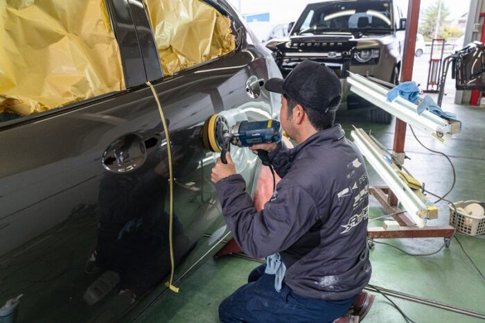 乾燥後には再度研磨を行い、塗装前のコンディションを完璧な状態へと仕上げていきます。