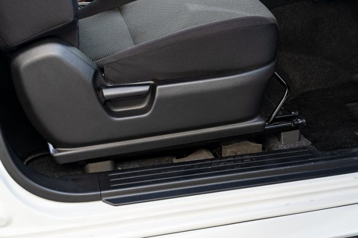 シートの高さ調整はできないため、小柄な方や女性ドライバーにとっては足が届きにくい、前が見えづらいという問題が起こりがち。