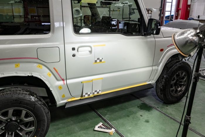 修理場所は、左側面の前後ドアとクォーターパネルなどです。